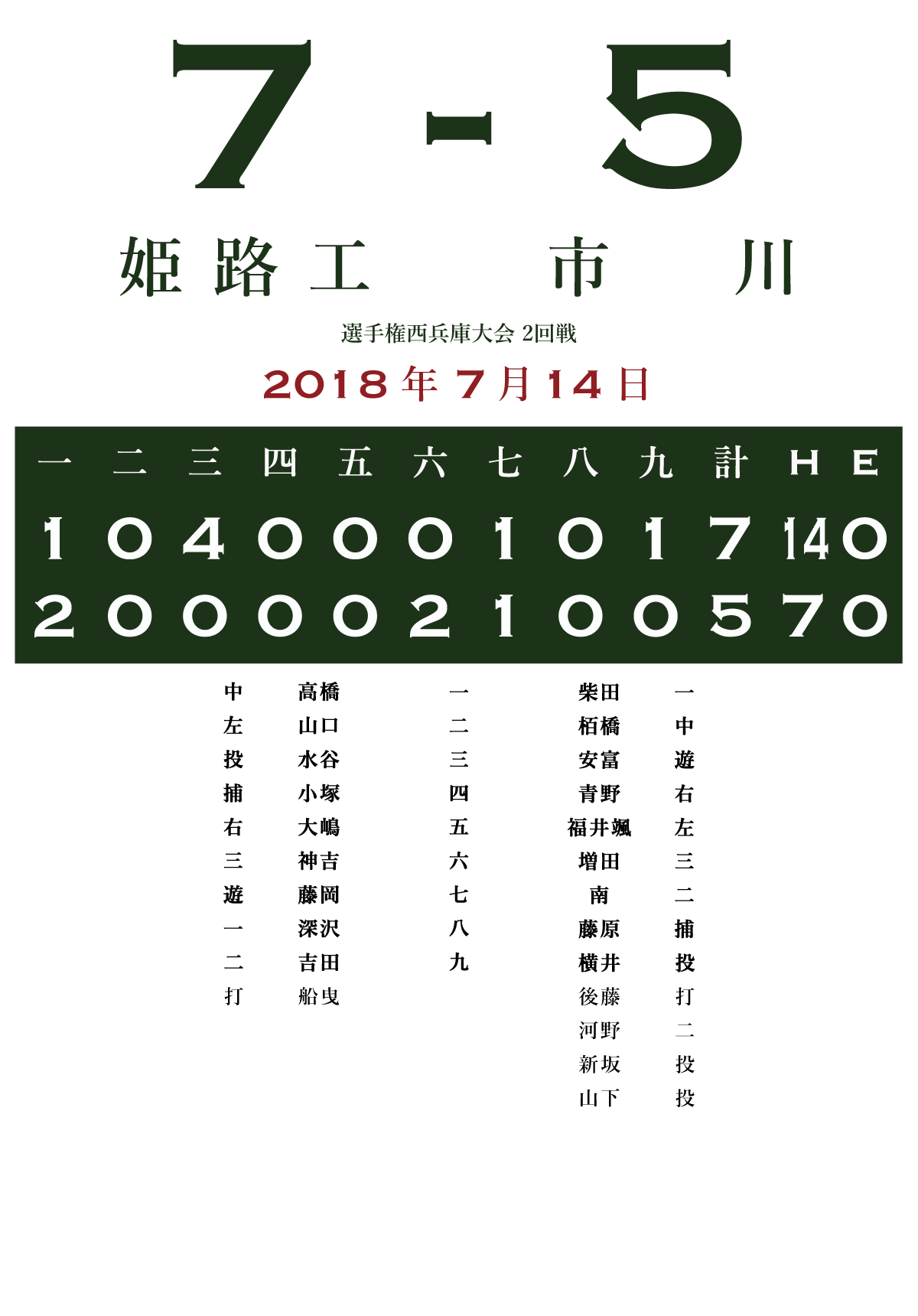 試合名: 姫路工 - 市川