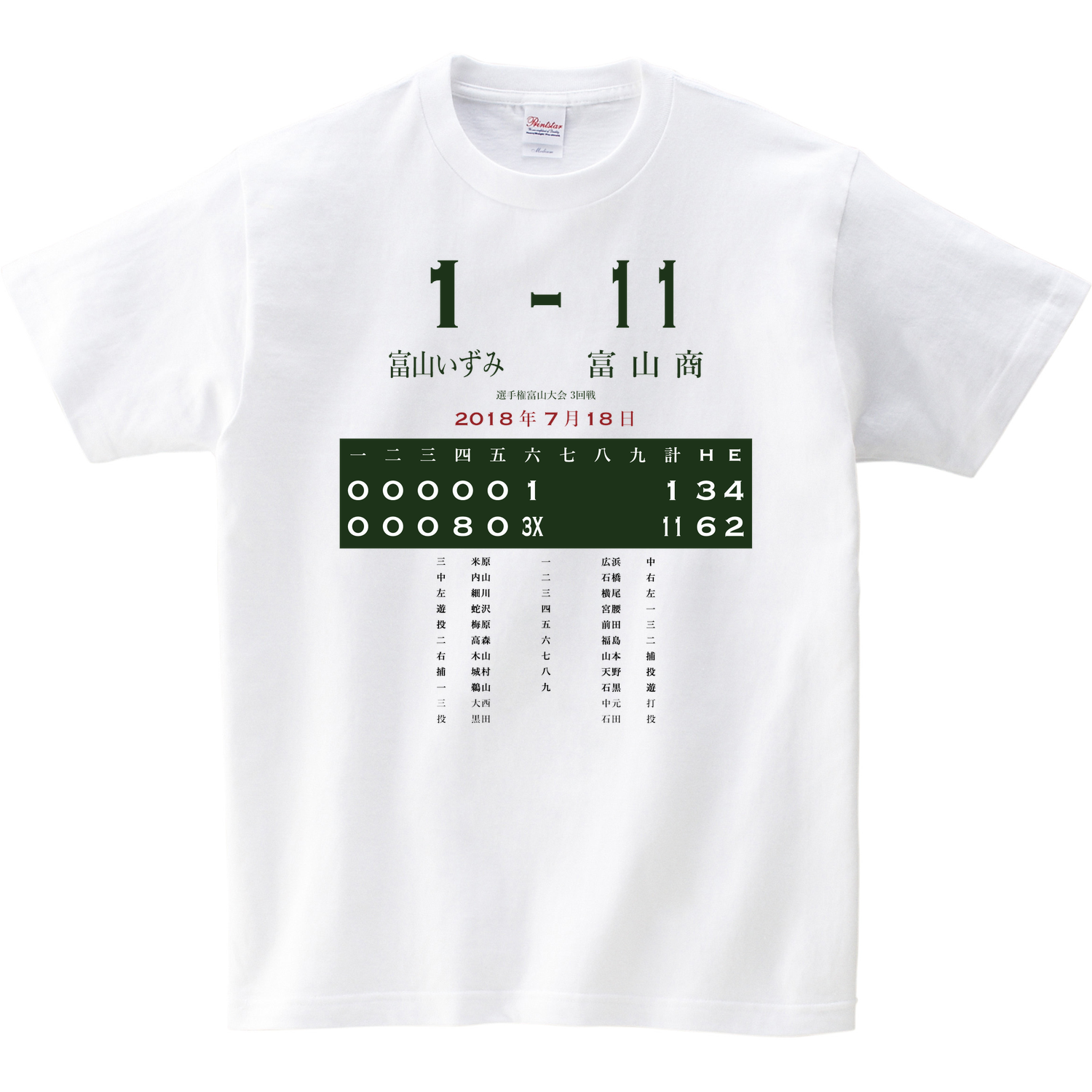 全ての高校球児へ。デザイン料は無料、Tシャツ代+プリント代で一枚税込み