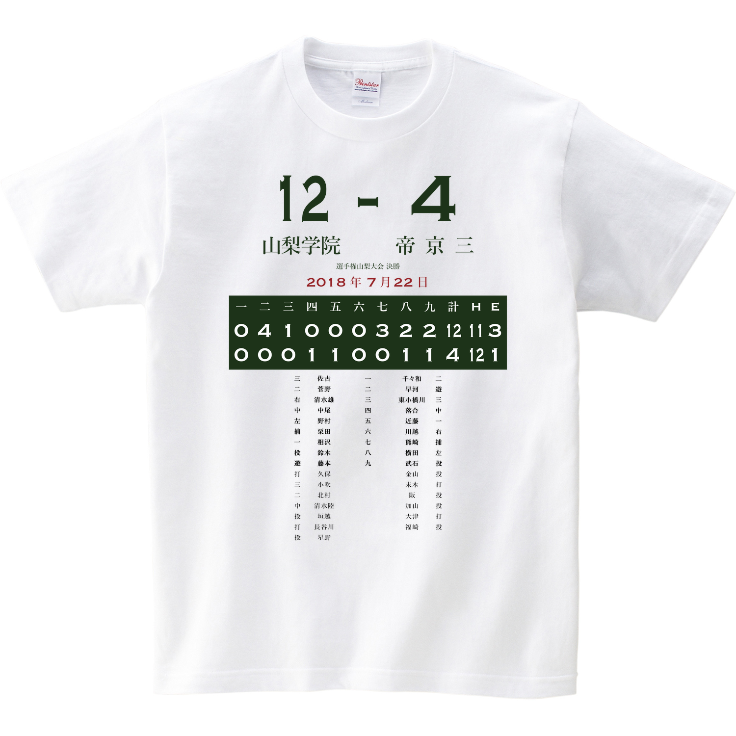 全ての高校球児へ。デザイン料は無料、Tシャツ代+プリント代で一枚税込み