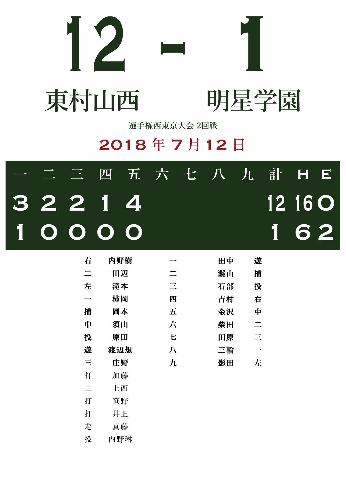 2018_選手権西東京大会_2回戦_東村山西-明星学園